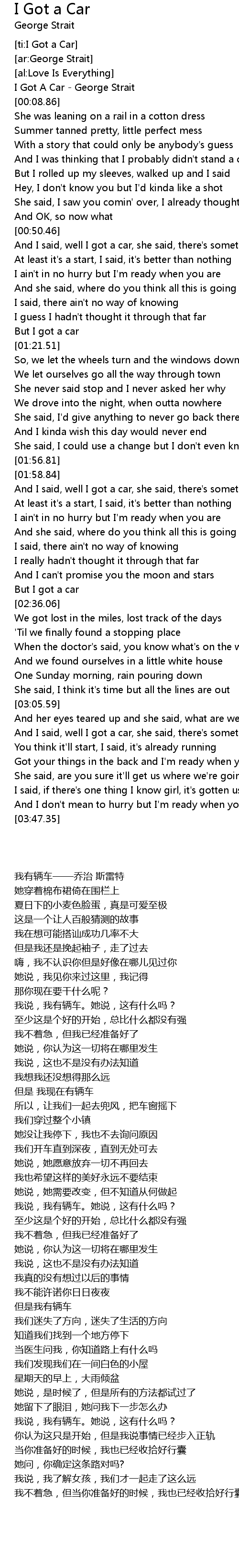 I Got A Car - George Strait |