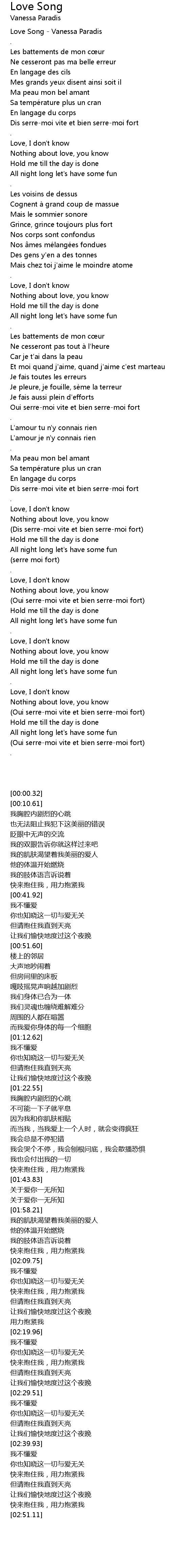 | [00:00.32] | Love Song - Vanessa Paradis |