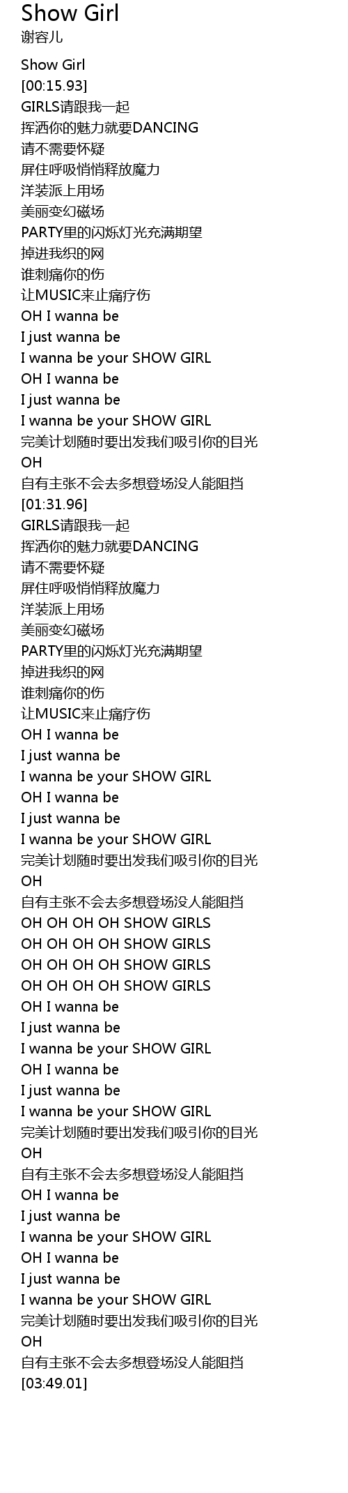 | [02:31.94] | OH OH OH OH SHOW GIRLS |