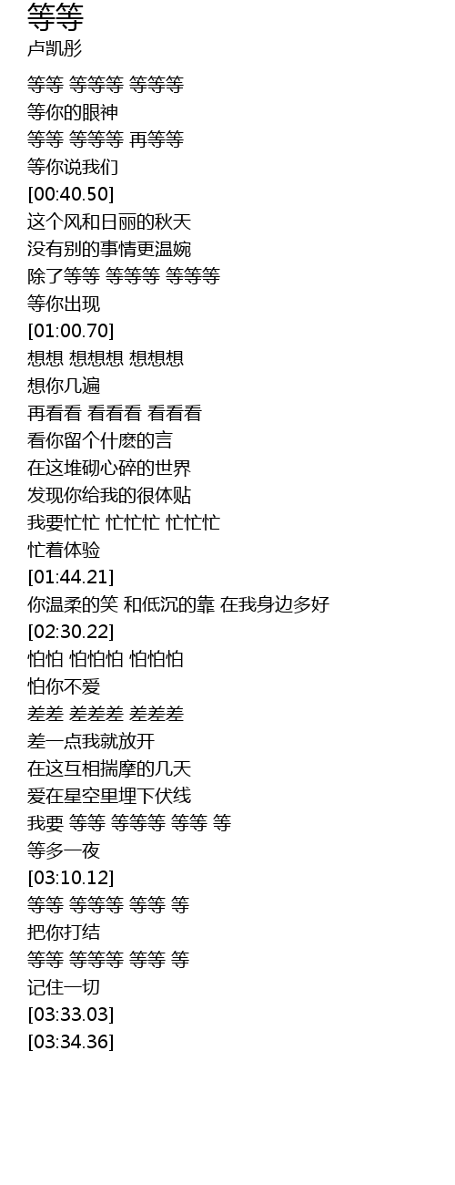 | [03:01.16] | 我要 等等 等等等 等等 等 |