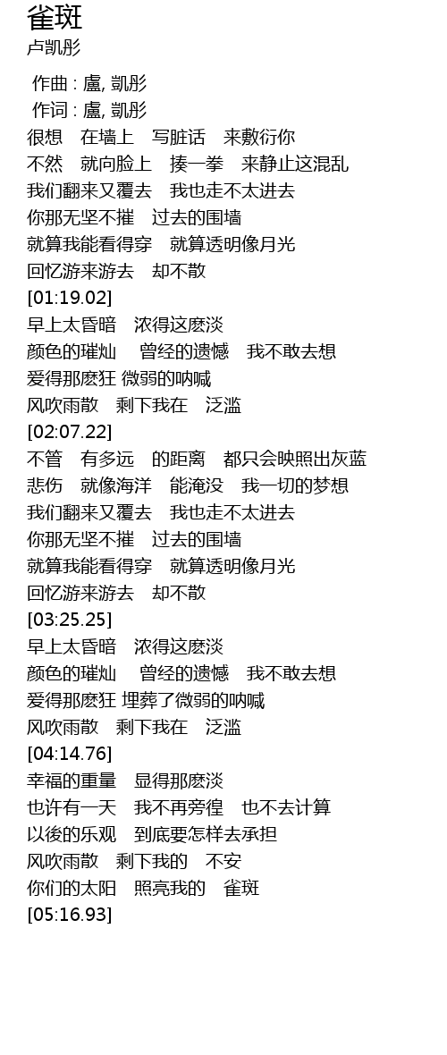 | [05:06.12] | 你们的太阳 照亮我的 雀斑 |