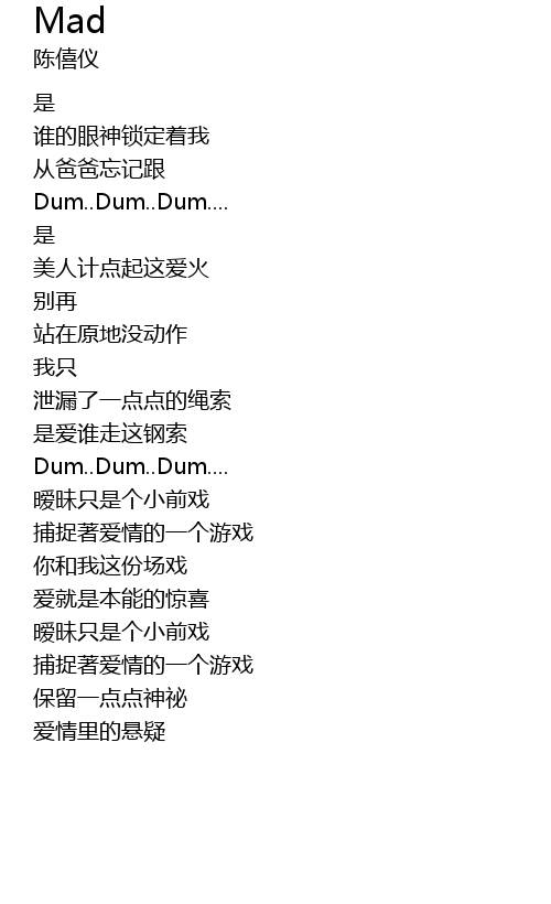 | 歌曲 | Mad |