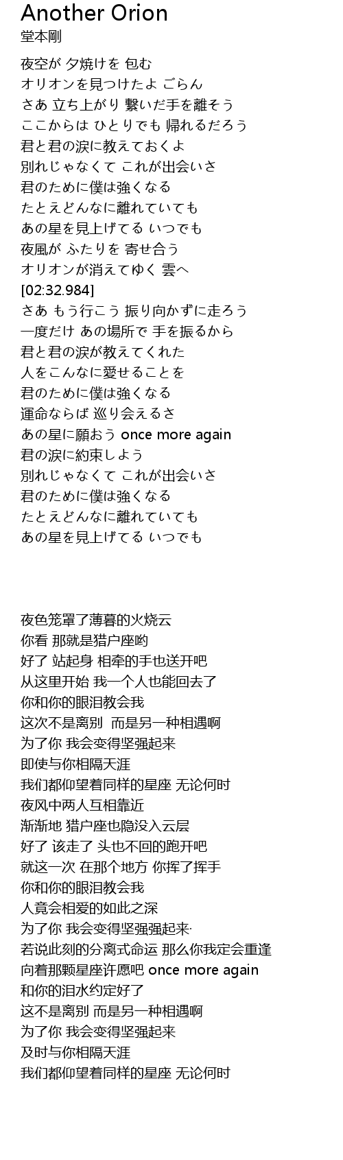 | [02:21.696] | オリオンが消えてゆく 雲へ |