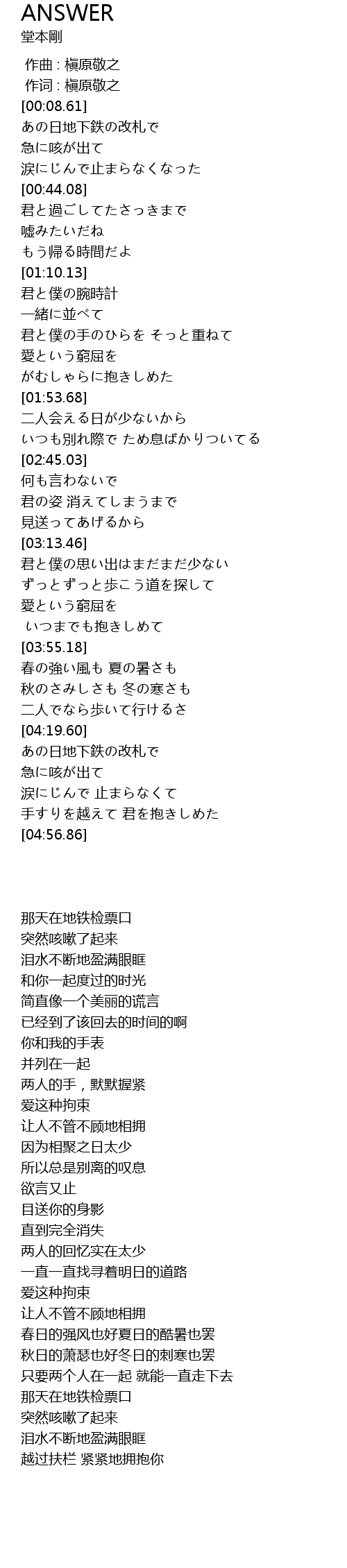 | [00:00.00] | 作曲 : 槇原敬之 |