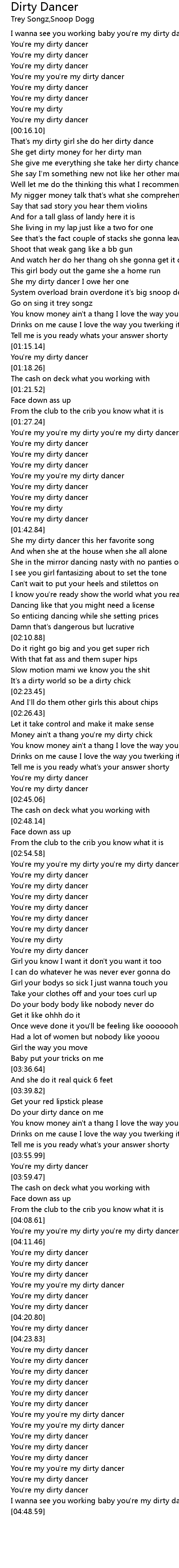 That's my dirty girl she do her dirty dance |