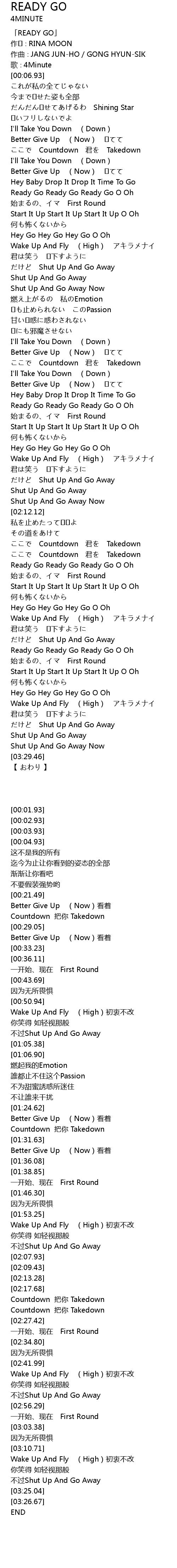 | [01:38.85] | Ready Go Ready Go Ready Go O Oh |