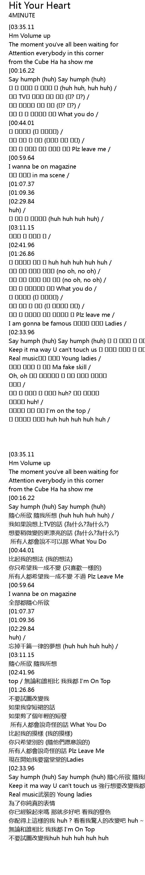 | [02:37.68] | Say humph (huh) Say humph (huh) 난 내 맘대로 내 멋대로 해 / |