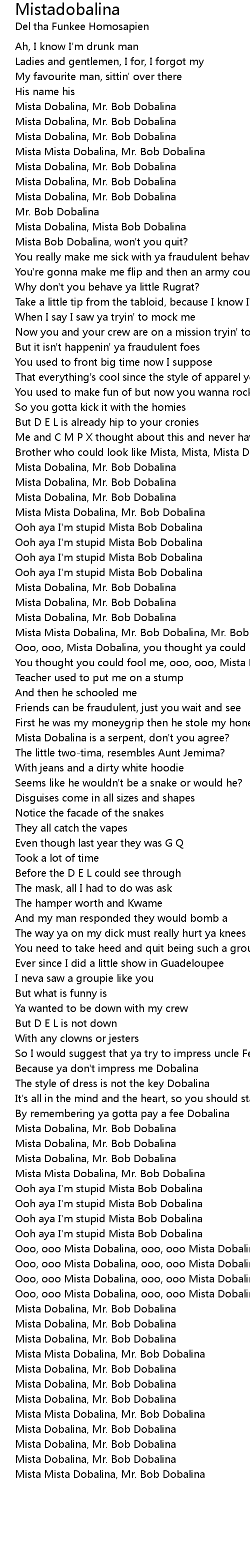 Mista Mista Dobalina, Mr. Bob Dobalina, Mr. Bob Dobalina |