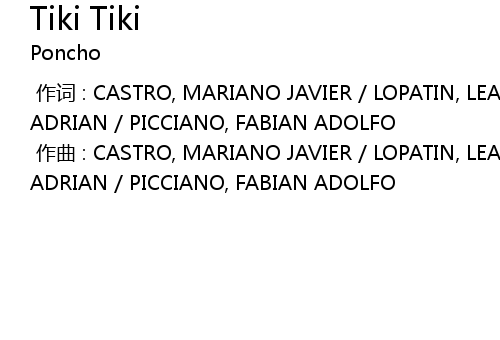 | [00:00.000] | 作词 : CASTRO, MARIANO JAVIER / LOPATIN, LEANDRO / ZUKER, JAVIER ADRIAN / PICCIANO, FABIAN ADOLFO |