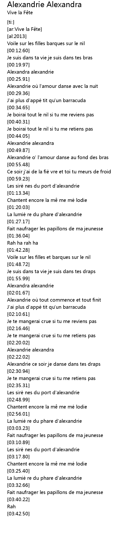 | [02:25.03] | Alexandrie ce soir je danse dans tes draps |