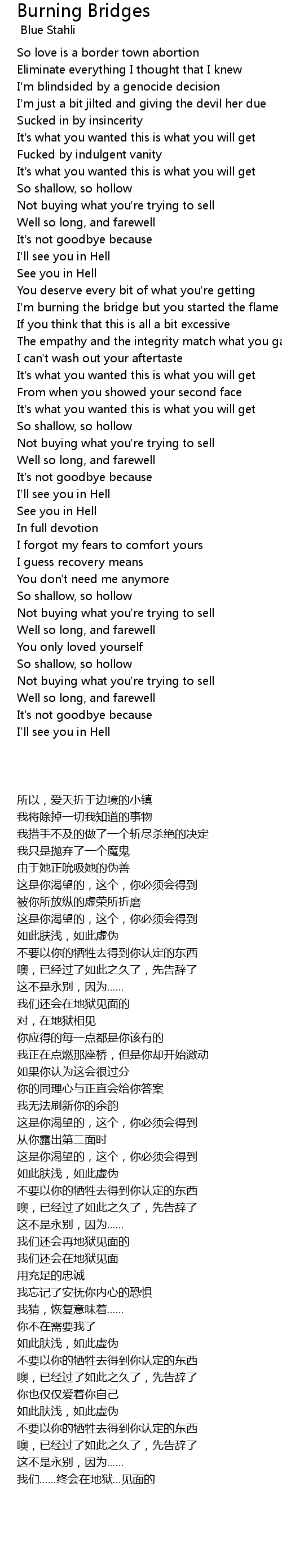 I'm burning the bridge but you started the flame |