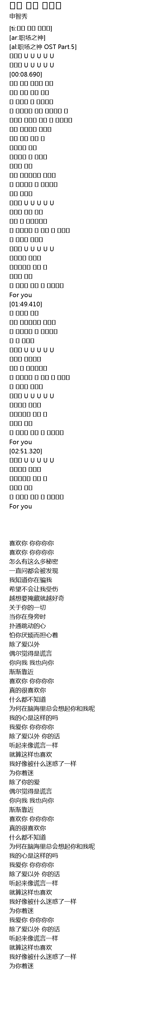 | [02:31.490] | 사랑해 U U U U U |