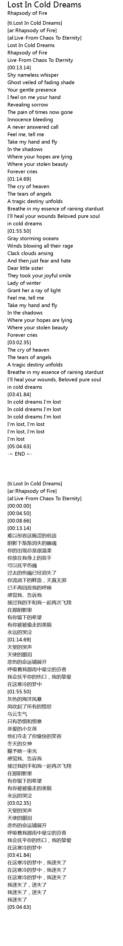 [ti:Lost In Cold Dreams] |