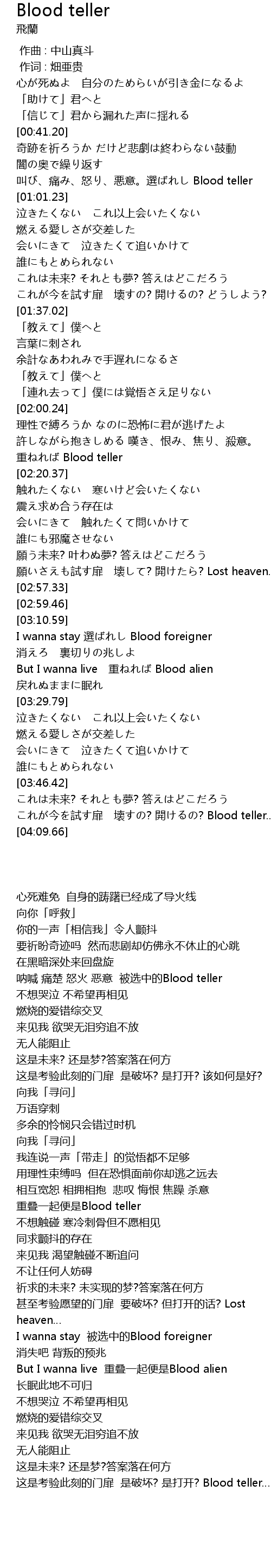 | [03:54.74] | これが今を試す扉 壊すの? 開けるの? Blood teller… |