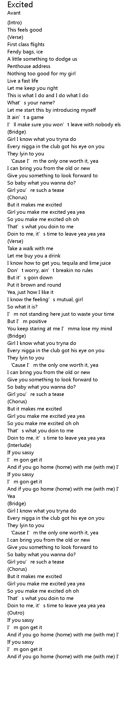| Girl you make me excited yea yea | |