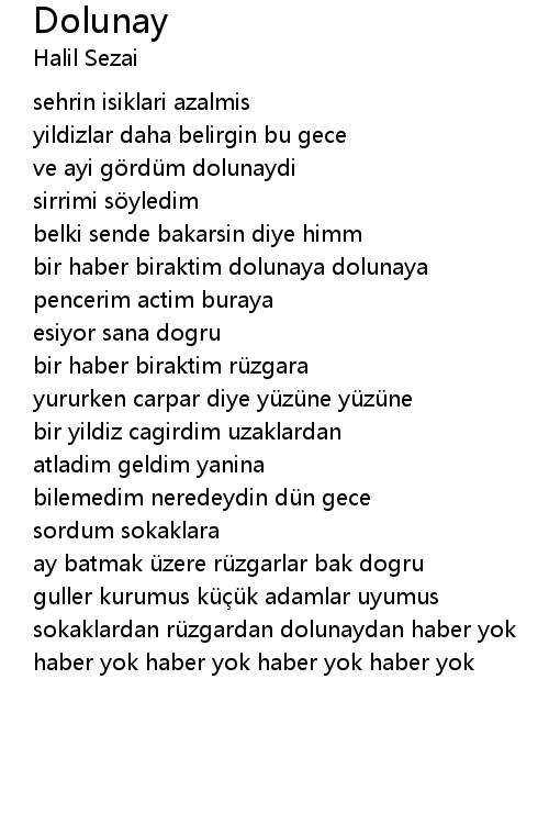 | bir haber biraktim dolunaya dolunaya | |
