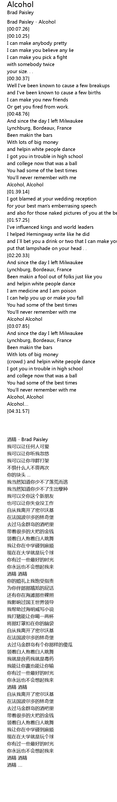 Brad Paisley - Alcohol |