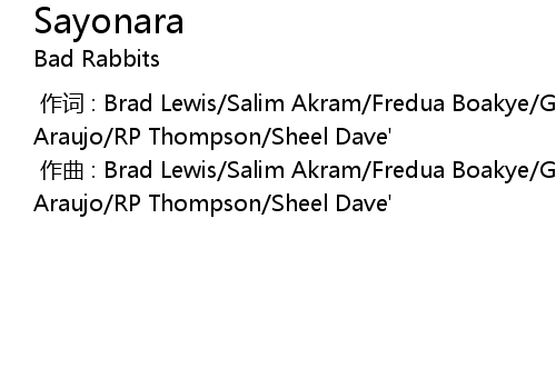 | [00:00.000] | 作词 : Brad Lewis/Salim Akram/Fredua Boakye/Graham Masser/Santiago Araujo/RP Thompson/Sheel Dave' |