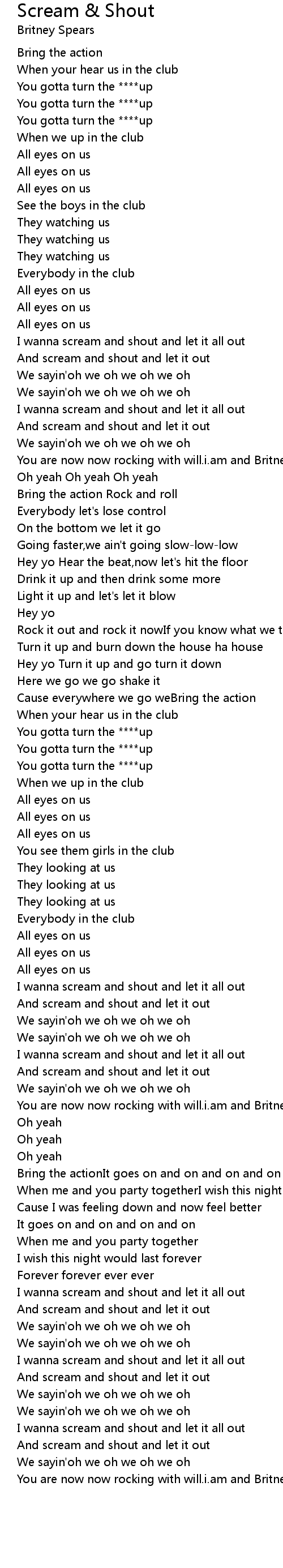 I wanna scream and shout and let it all out |