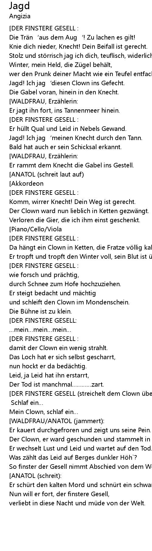 | [01:44.08] | Jagd! Ich jag‘meinen Knecht durch den Tann. |