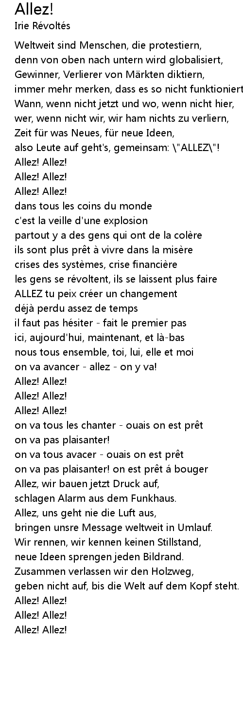 | Allez, uns geht nie die Luft aus, | |