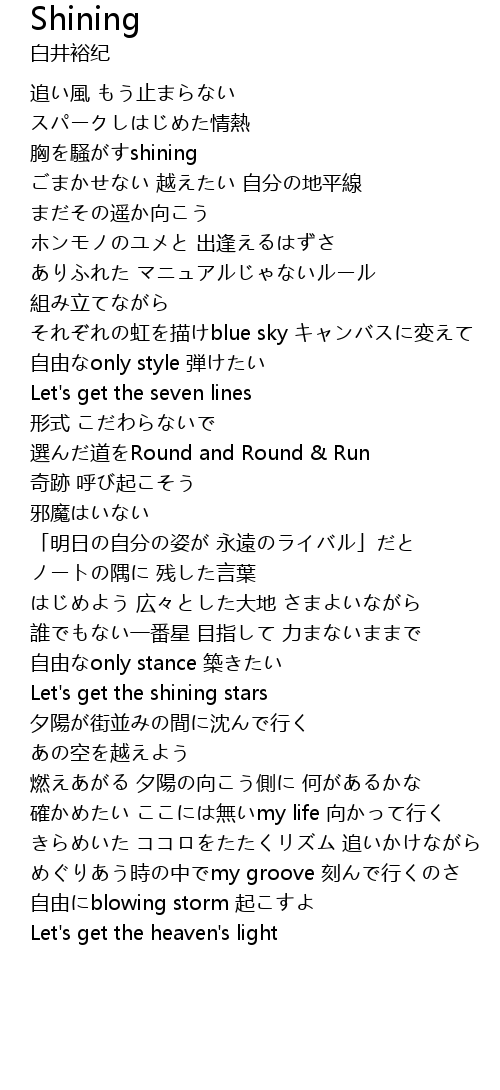 | [02:23.16] | Let's get the shining stars |