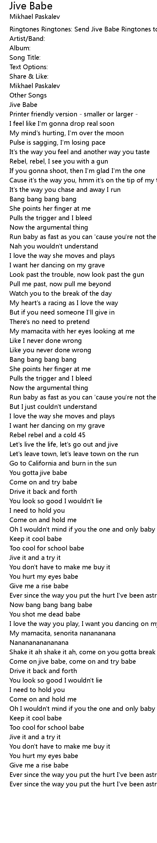 Ringtones Ringtones: Send Jive Babe Ringtones to your Cell |