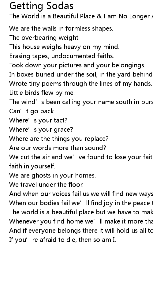 | 歌手 | The World is a Beautiful Place & I am No Longer Afraid to Die |