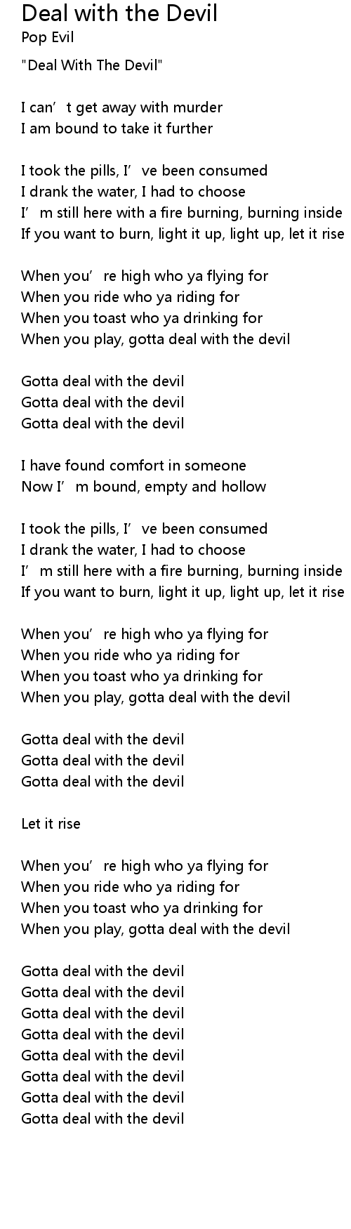 | Gotta deal with the devil | |