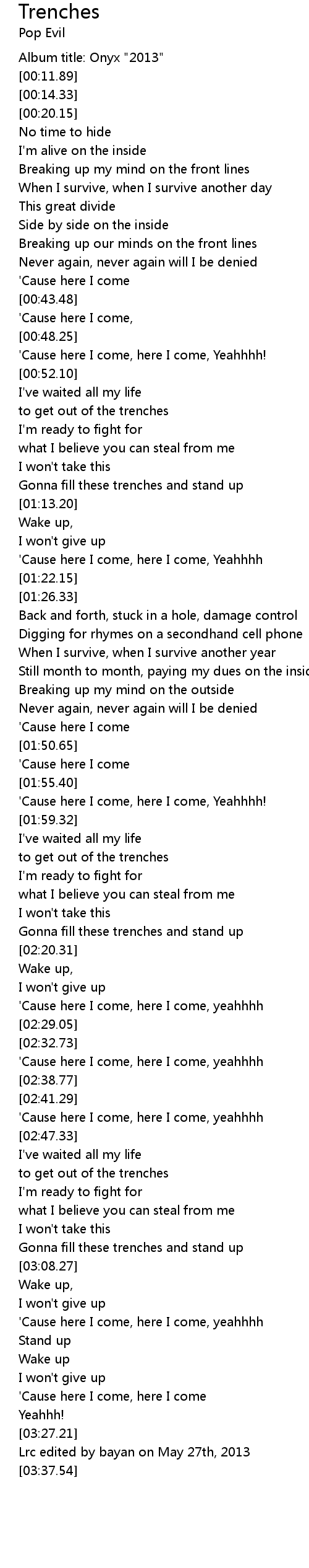 | [03:04.24] | Gonna fill these trenches and stand up |