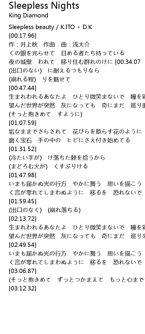 | [00:15.00] | Sleepless beauty / K.ITO + D.K |