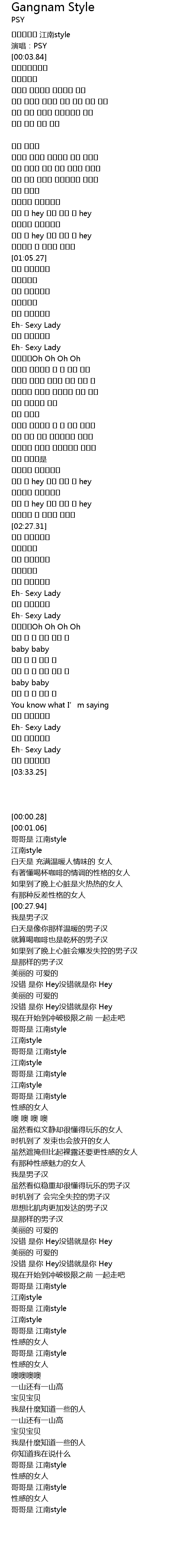 | [00:01.06] | 演唱:PSY |