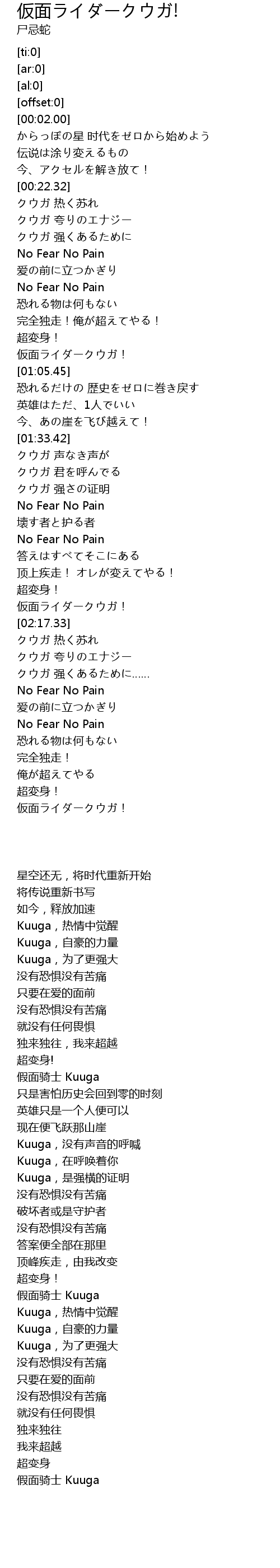 | [01:37.07] | Kuuga,没有声音的呼喊 |