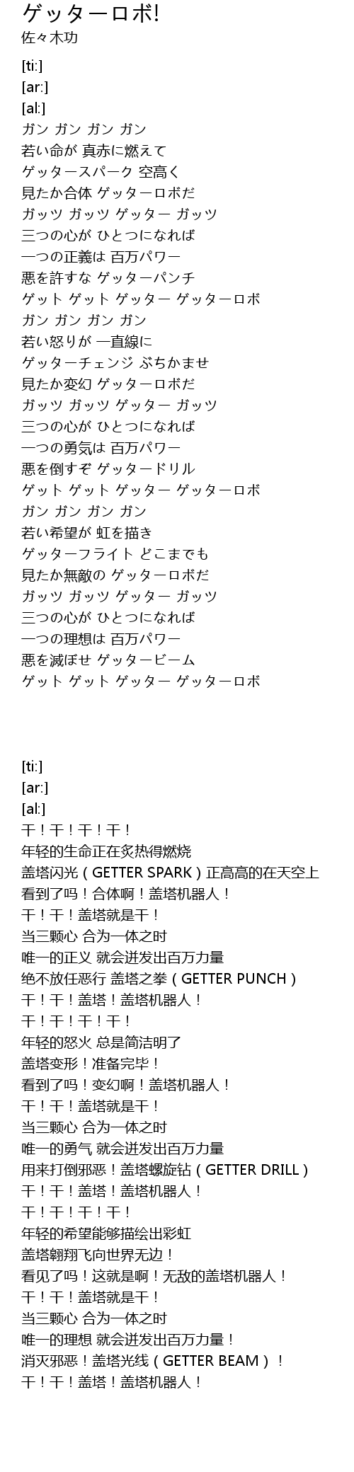 | [01:50.37] | ゲット ゲット ゲッター ゲッターロボ |