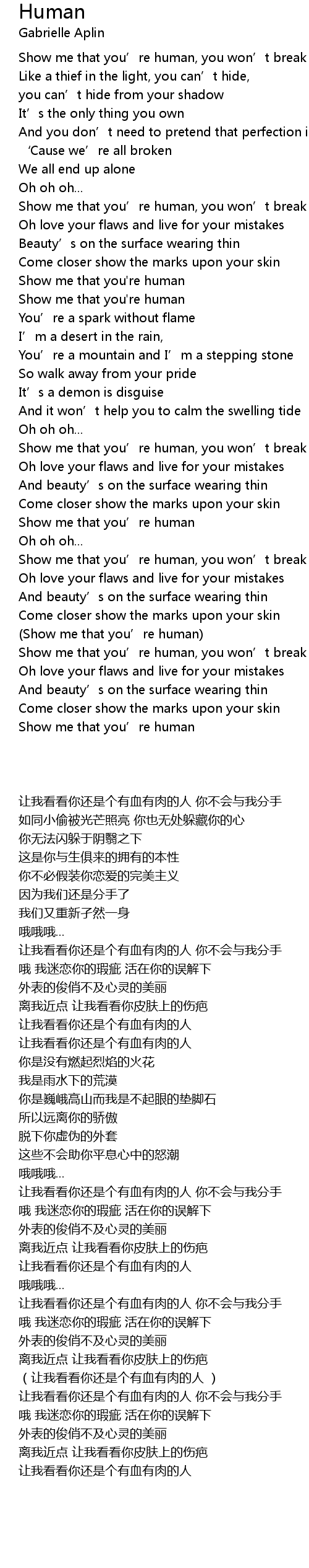 | [00:53.54] | Show me that you' re human |