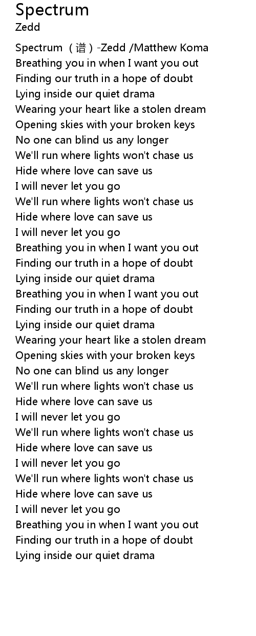 | [00:00.00] | Spectrum (谱)-Zedd /Matthew Koma |