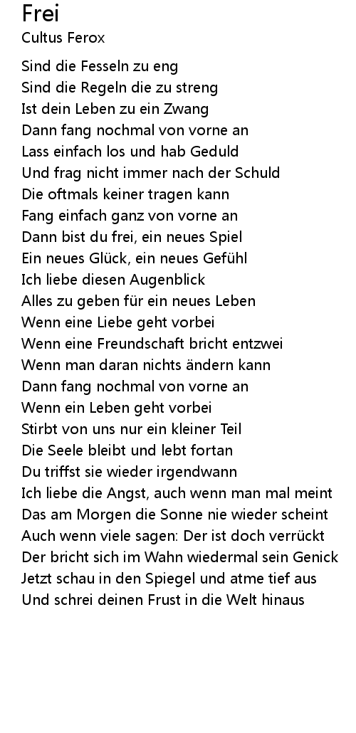 | Ich liebe die Angst, auch wenn man mal meint | |