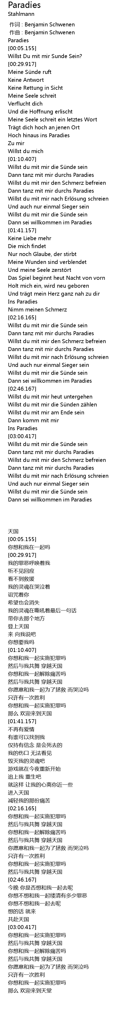 | [02:17.166] | Willst du mit mir die Sünde sein |