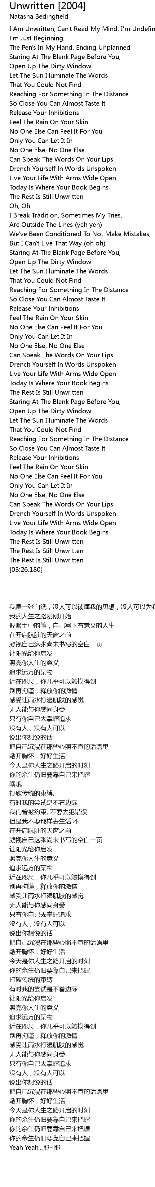 I Am Unwritten, Can't Read My Mind, I'm Undefined |
