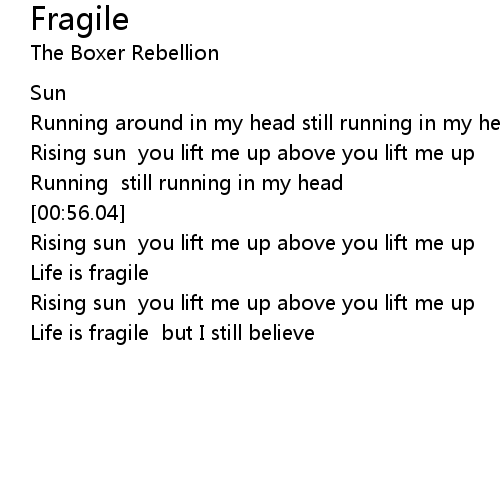 | [01:04.72] | Rising sun you lift me up above you lift me up |