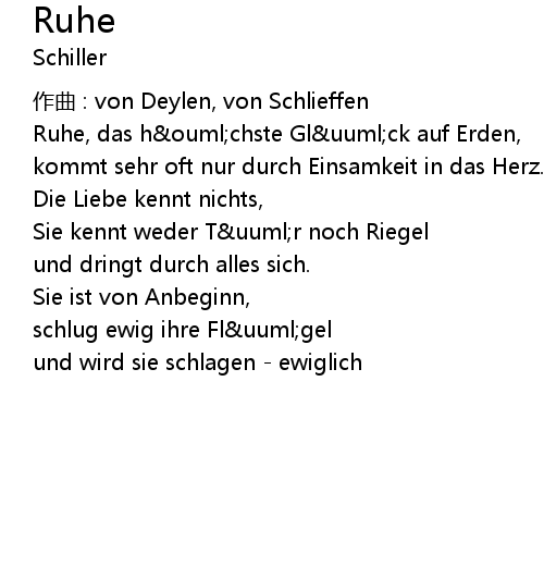 | Ruhe, das h ouml chste Gl uuml ck auf Erden, | |
