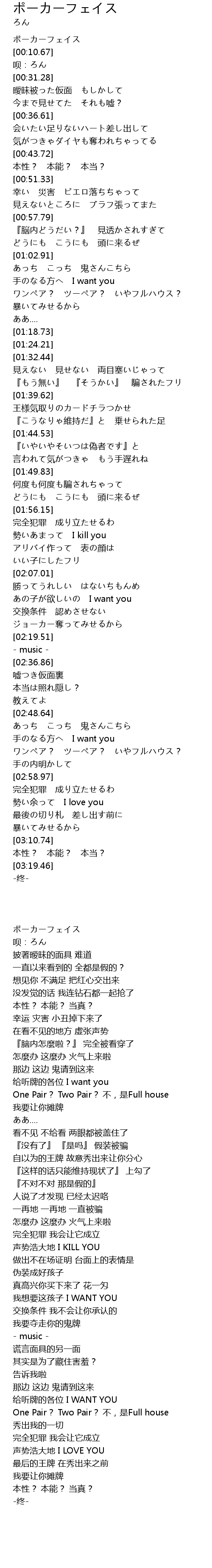| [01:08.18] | ワンペア? ツーペア? いやフルハウス? |