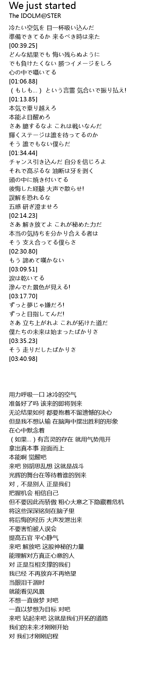 | [03:29.88] | 僕たちの未来は始まったばかりさ |
