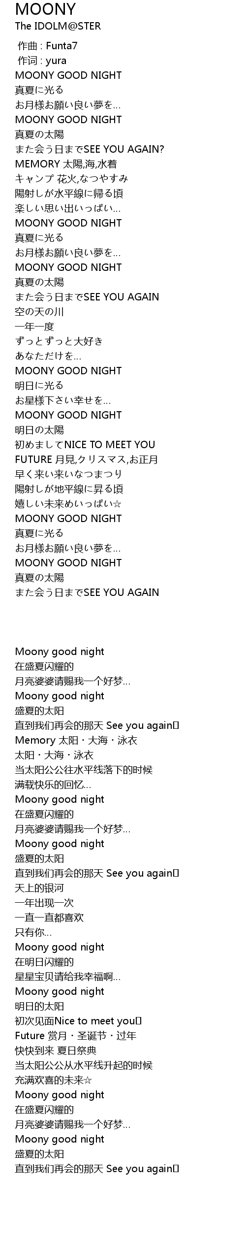 | [01:14.71] | 月亮婆婆请赐我一个好梦… |