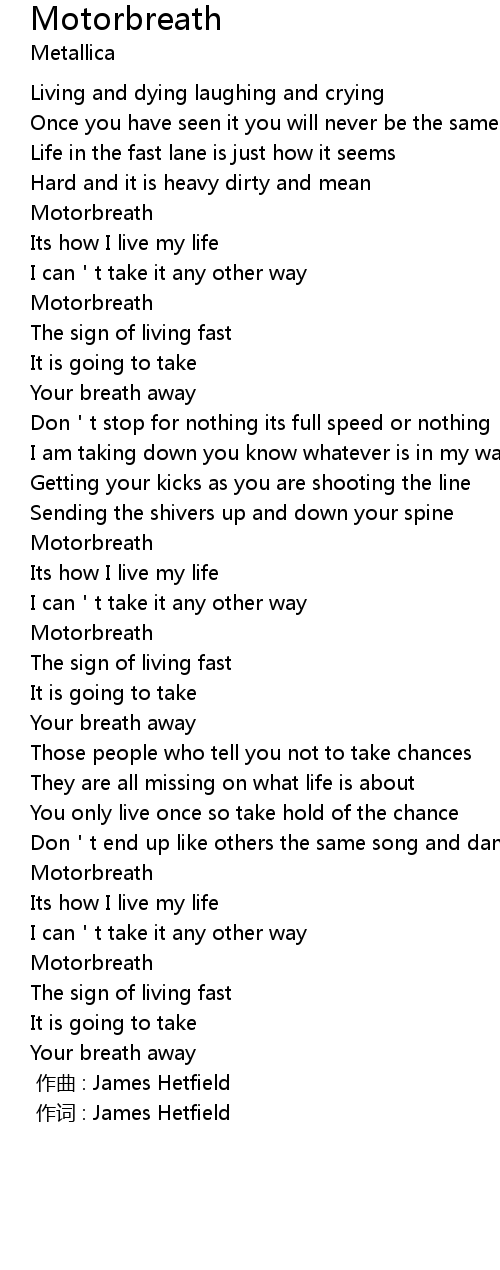 | 歌曲 | Motorbreath |