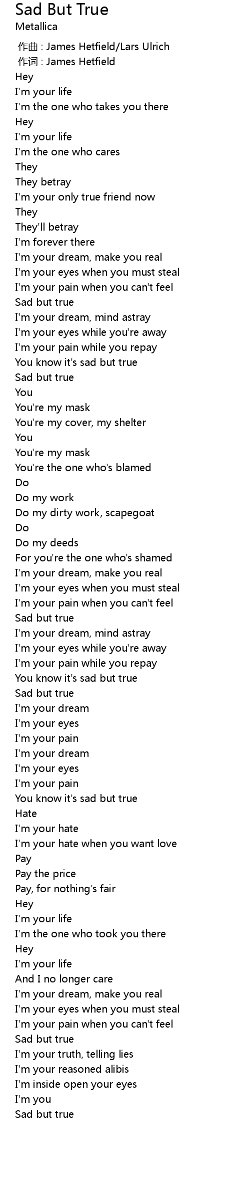 | 歌曲 | Sad But True |