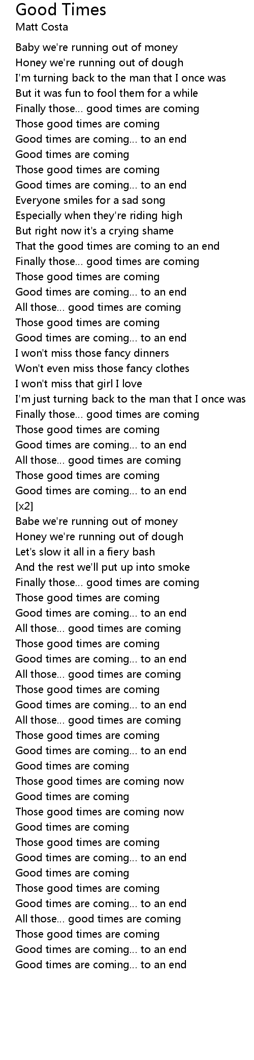 | All those… good times are coming | |