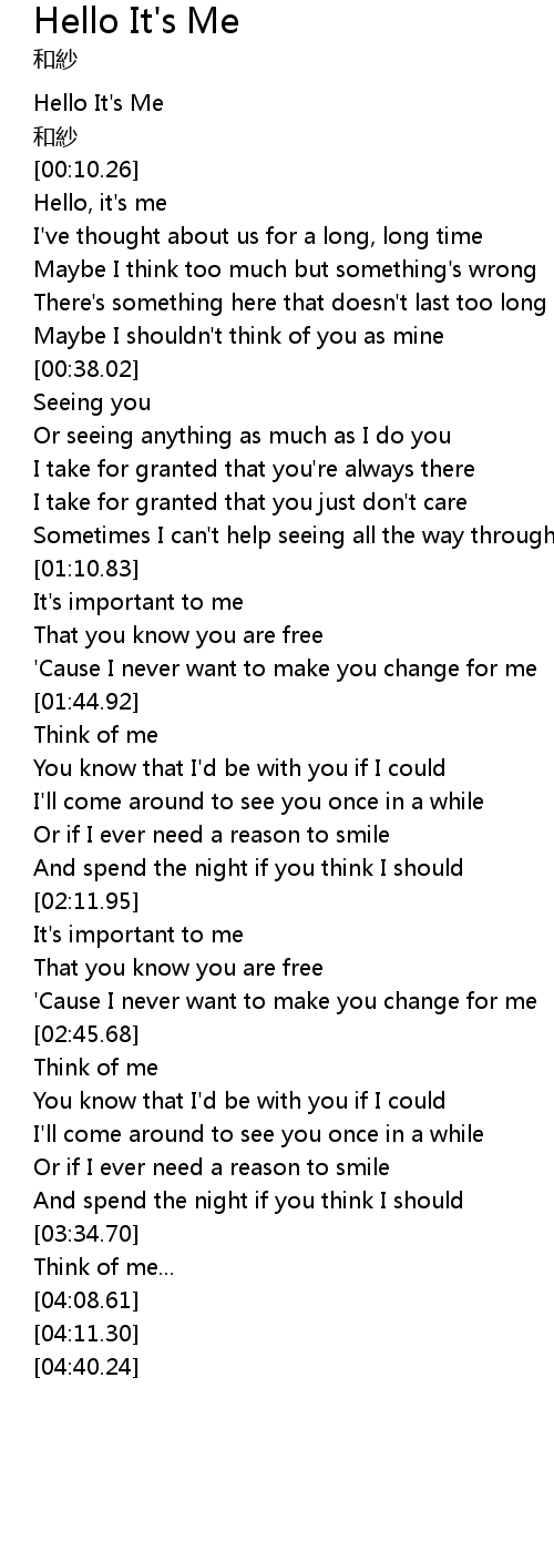 | [00:00.00] | Hello It's Me |