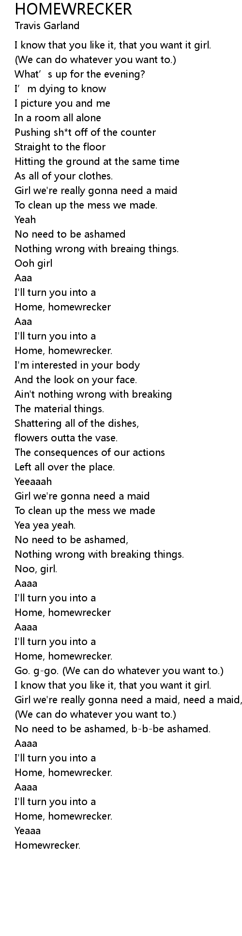 | Home, homewrecker | |