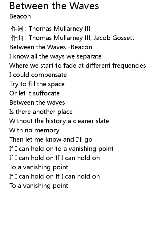 | [00:00.000] | 作词 : Thomas Mullarney III |